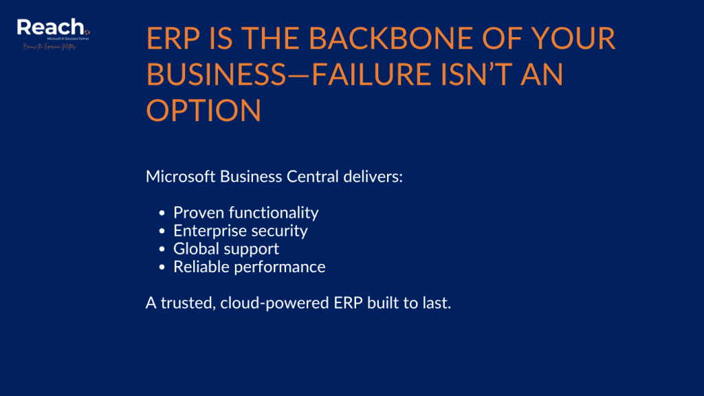ERP is not just software—it’s the system of record for a business. A failed implementation or unstable platform can disrupt operations, delay financial closes, or erode trust with customers.